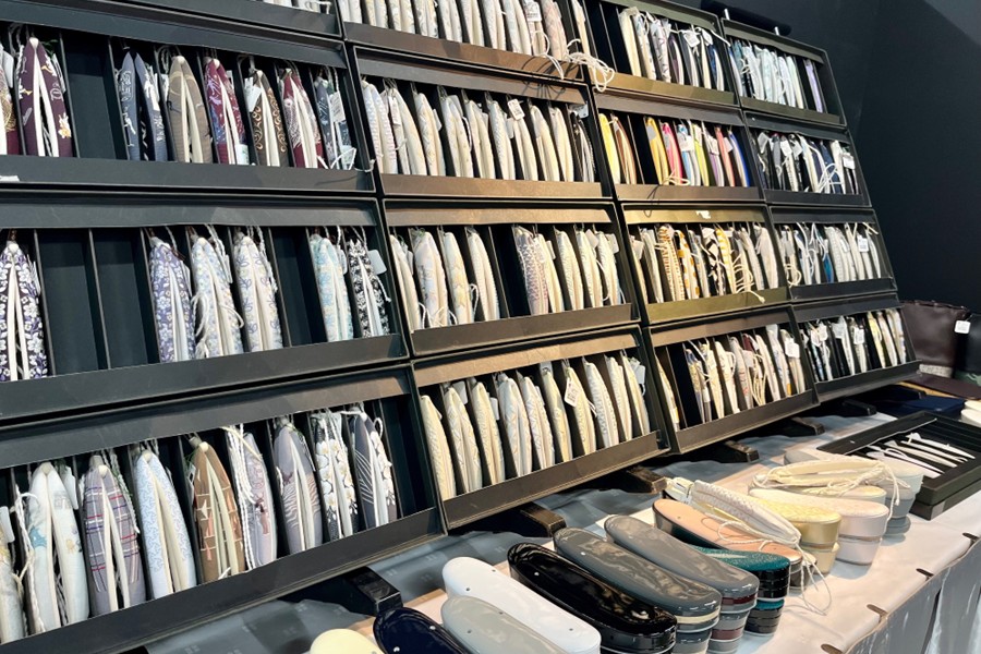 今回、特に広くブースを設けたのが草履のお誂えと、進化型の長襦袢「き楽っく」のブースです。